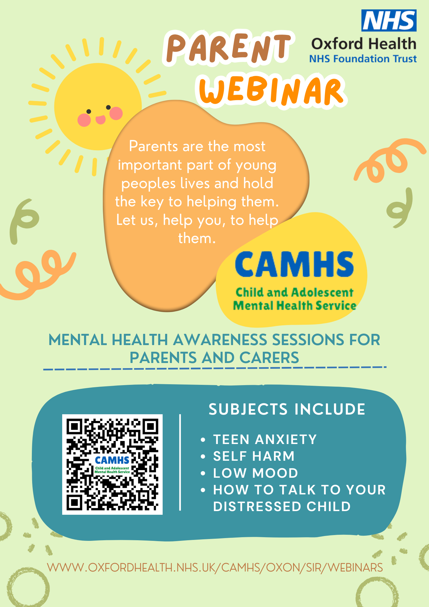You may access the Oxfordshire Child and Adolescent Mental Health Service online. This service is provided by the NHS. You may also contact them: