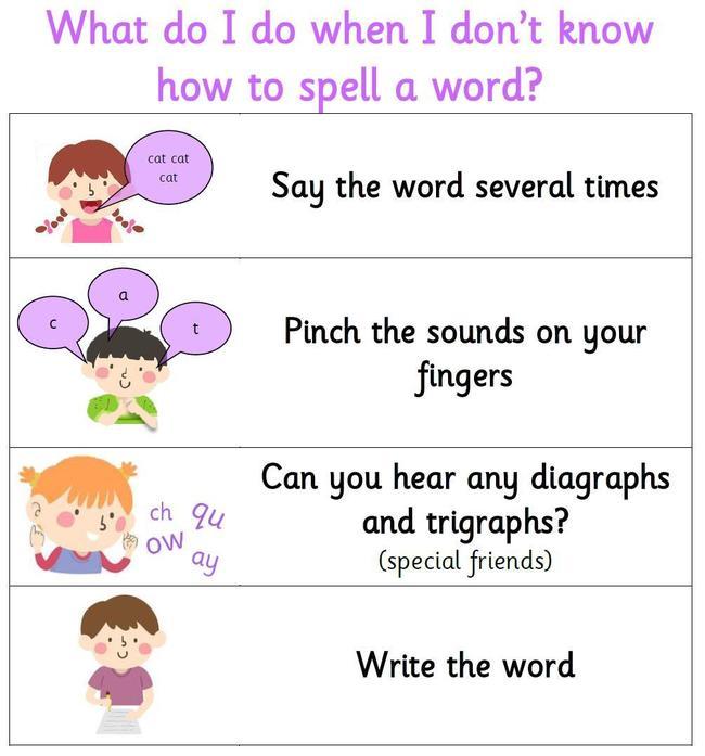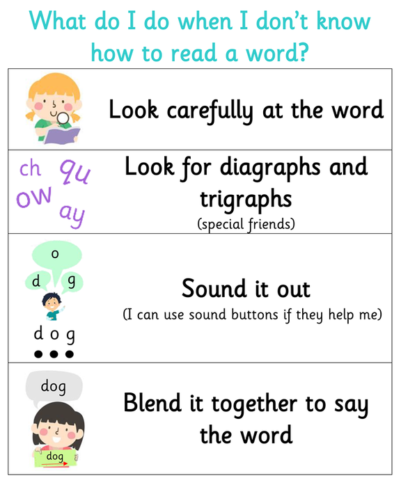 We have put the posters we use to remind children of the strategies we use when decoding and reading unfamiliar words or segmenting for spelling words we are unsure how to write. These are available as picture images as shown below and as PDF files which you can download.