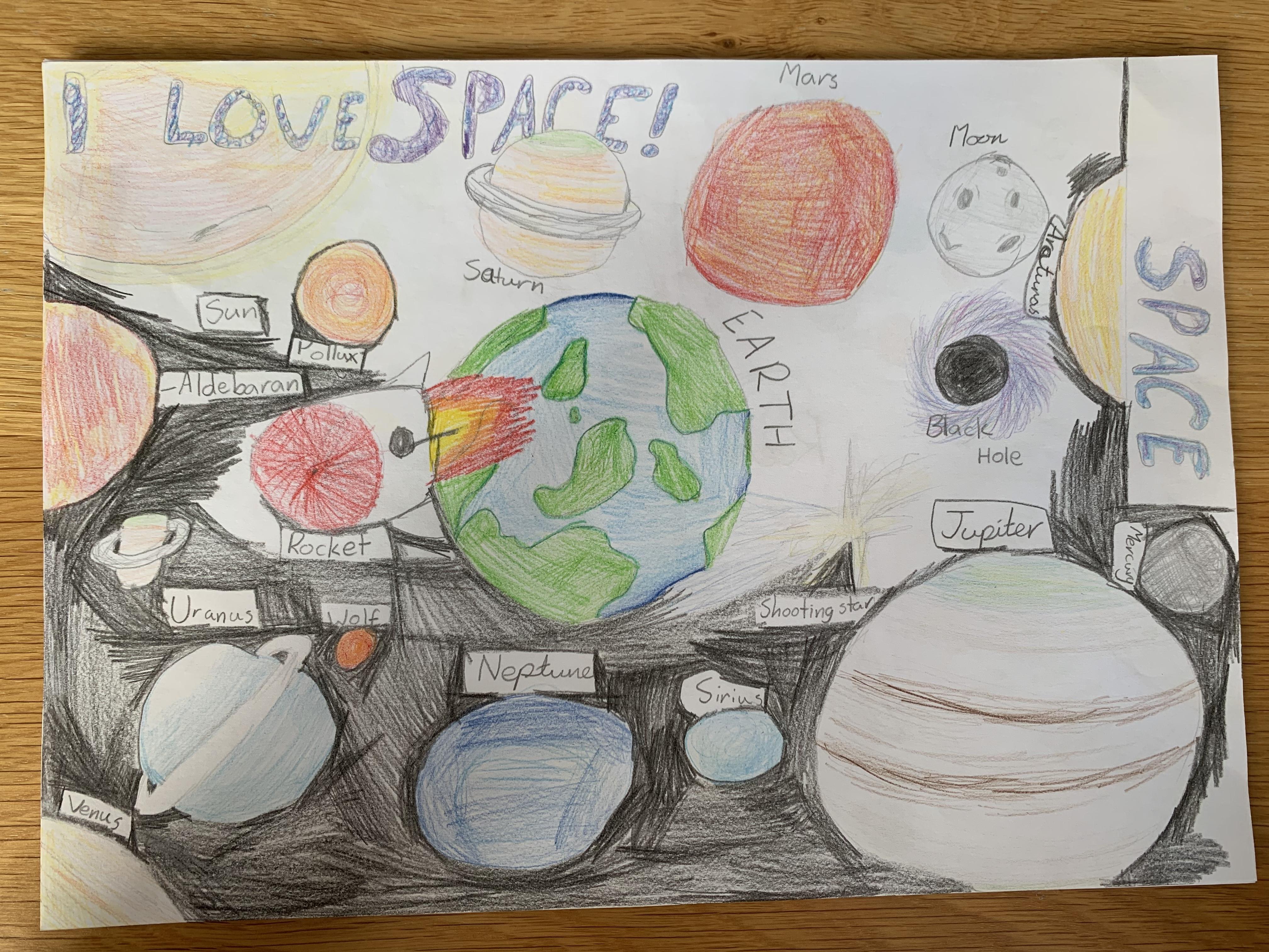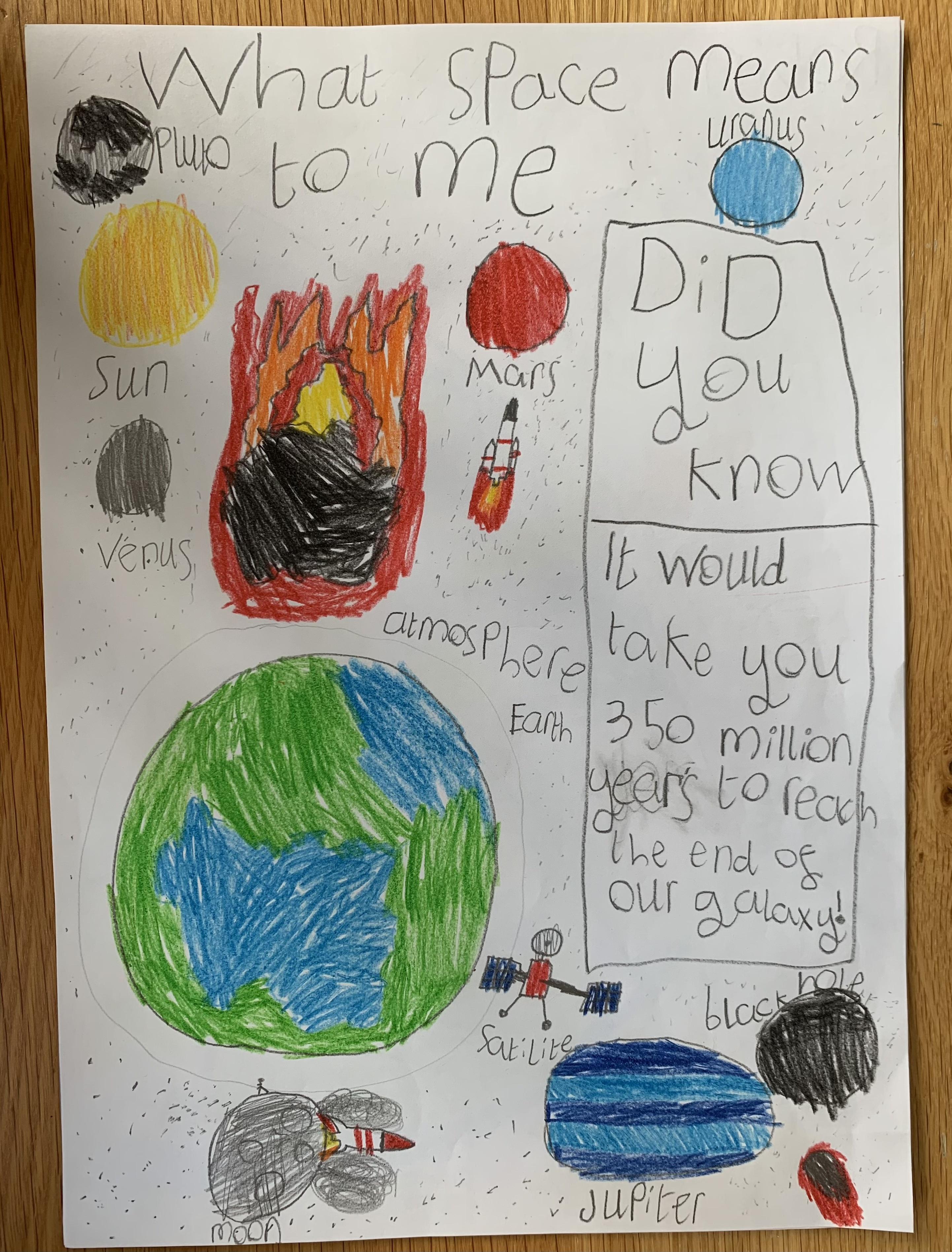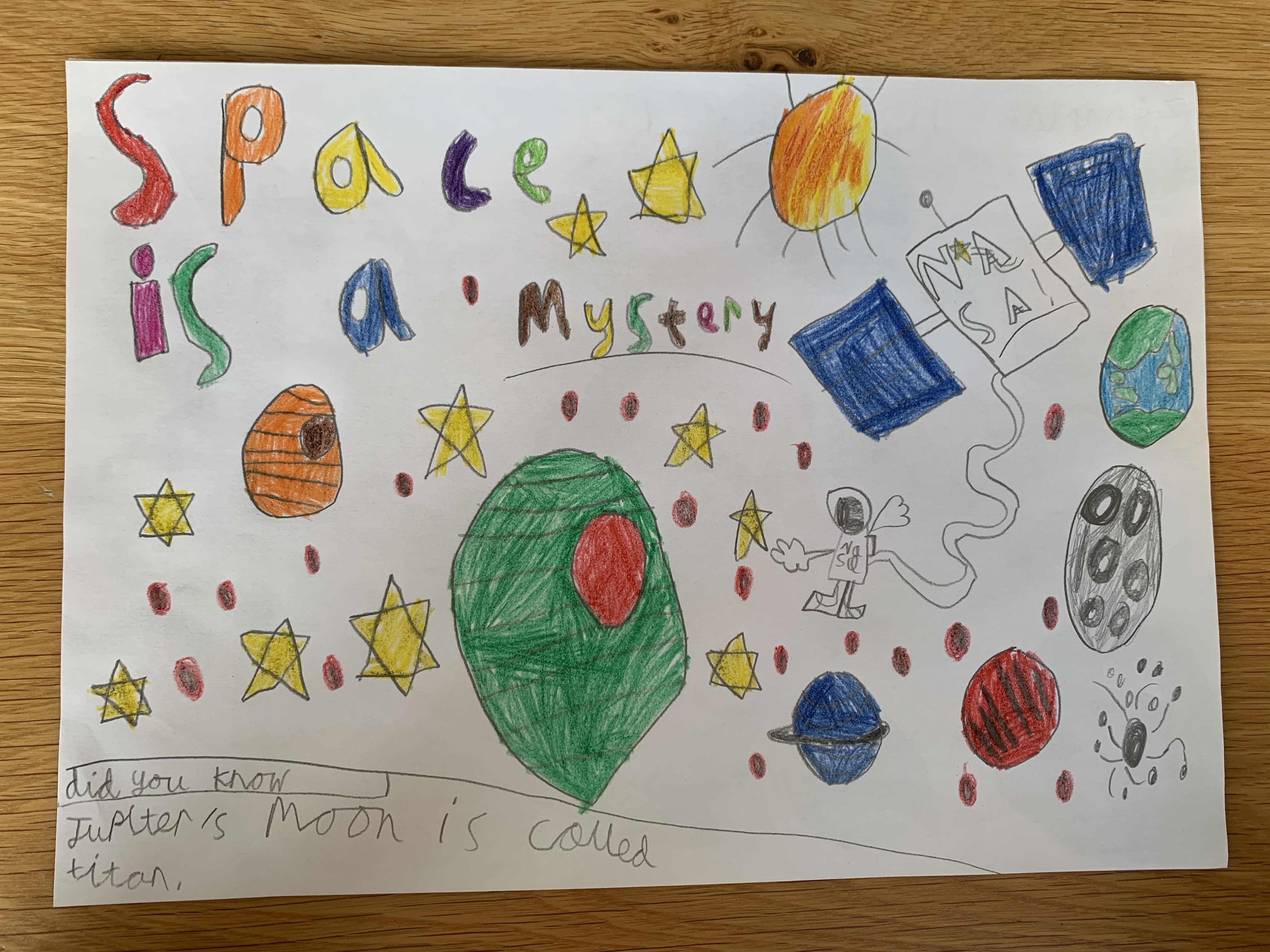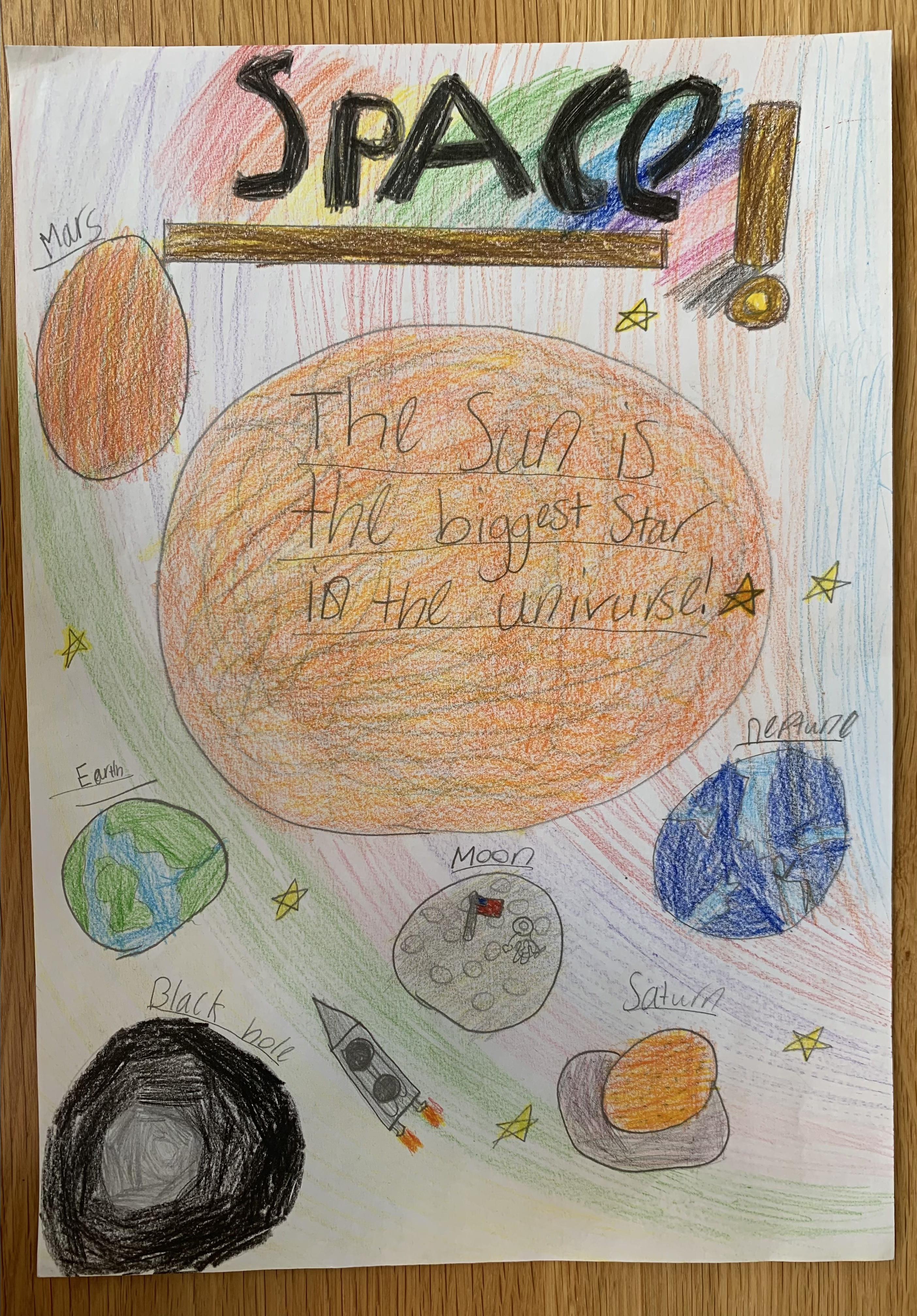 Children across the school have been busy creating posters about what space means to them. These have been entered into a competition held by Harwell Science. For more information look up 'Rise together Harwell Campus'. We have had some amazing posters created. Take a look at a few below.