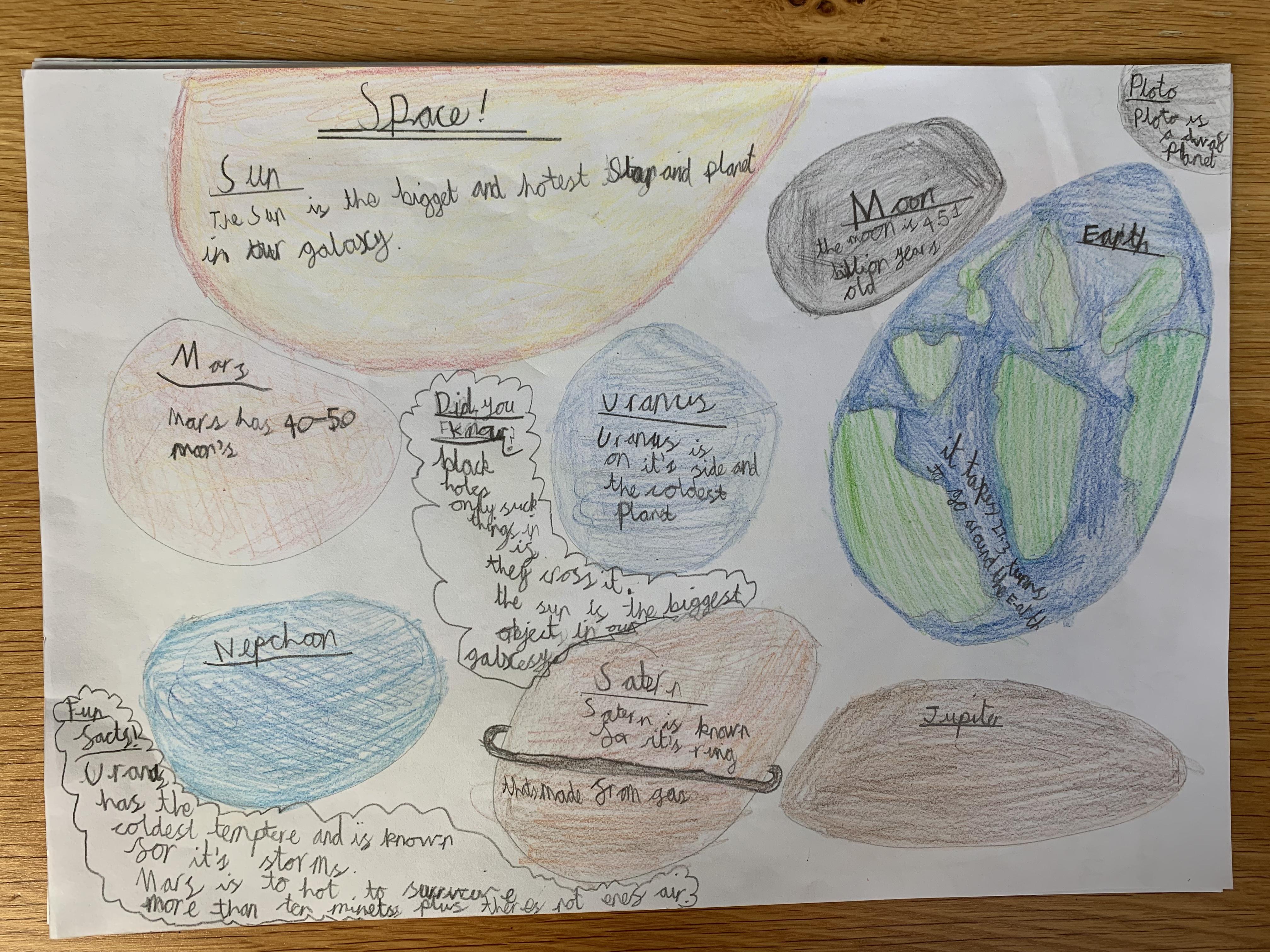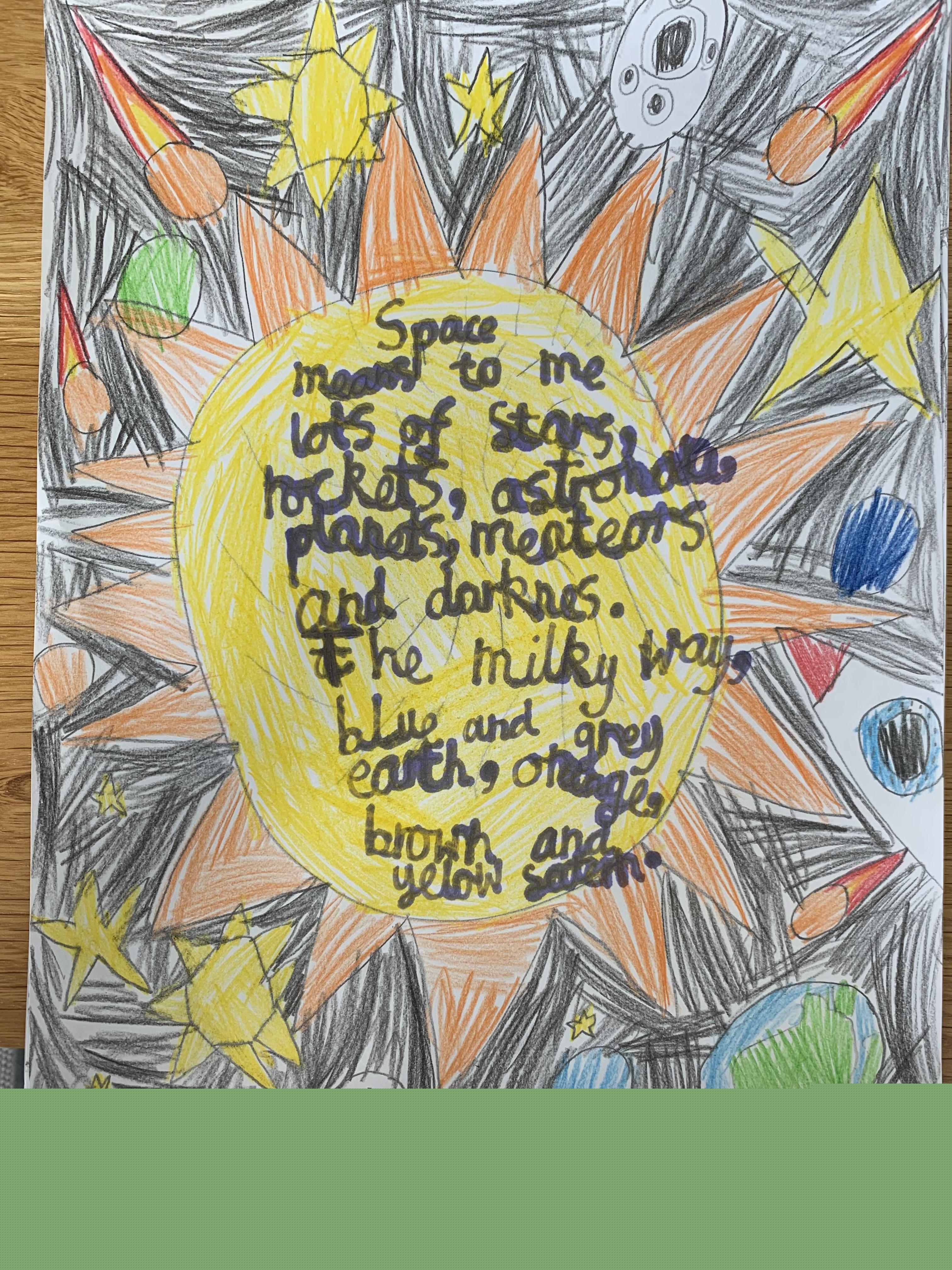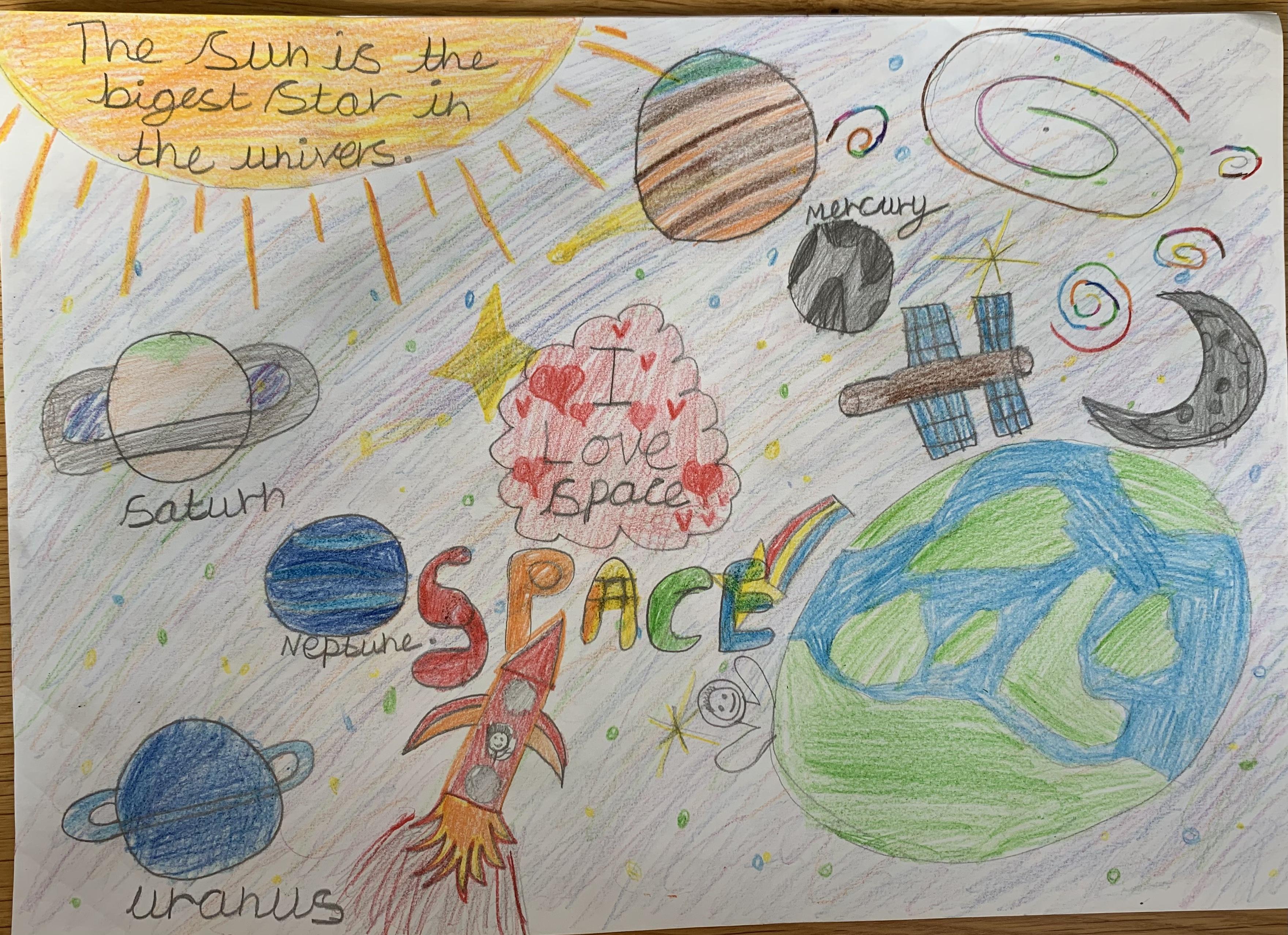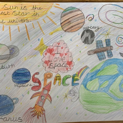 Children across the school have been busy creating posters about what space means to them. These have been entered into a competition held by Harwell Science. For more information look up 'Rise together Harwell Campus'. We have had some amazing posters created. Take a look at a few below.