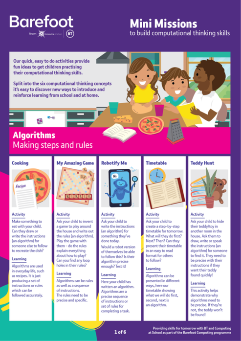 Some of the resources are free apps which you can download onto iPads, Android or Google devices; whilst others, like the Barefoot Computing Mini-Missions do not require a computer at all and look at developing skills and understanding of computational concepts.