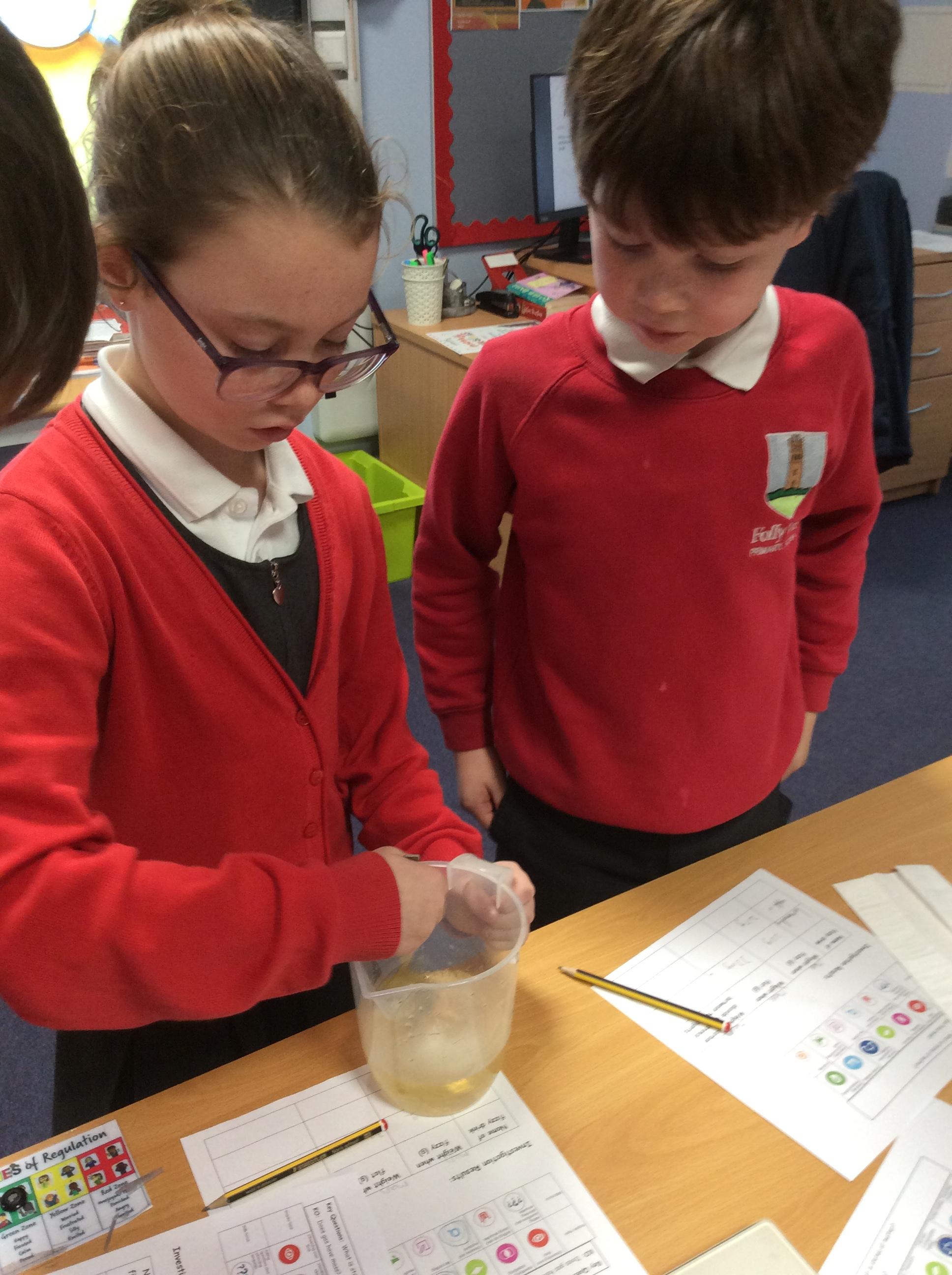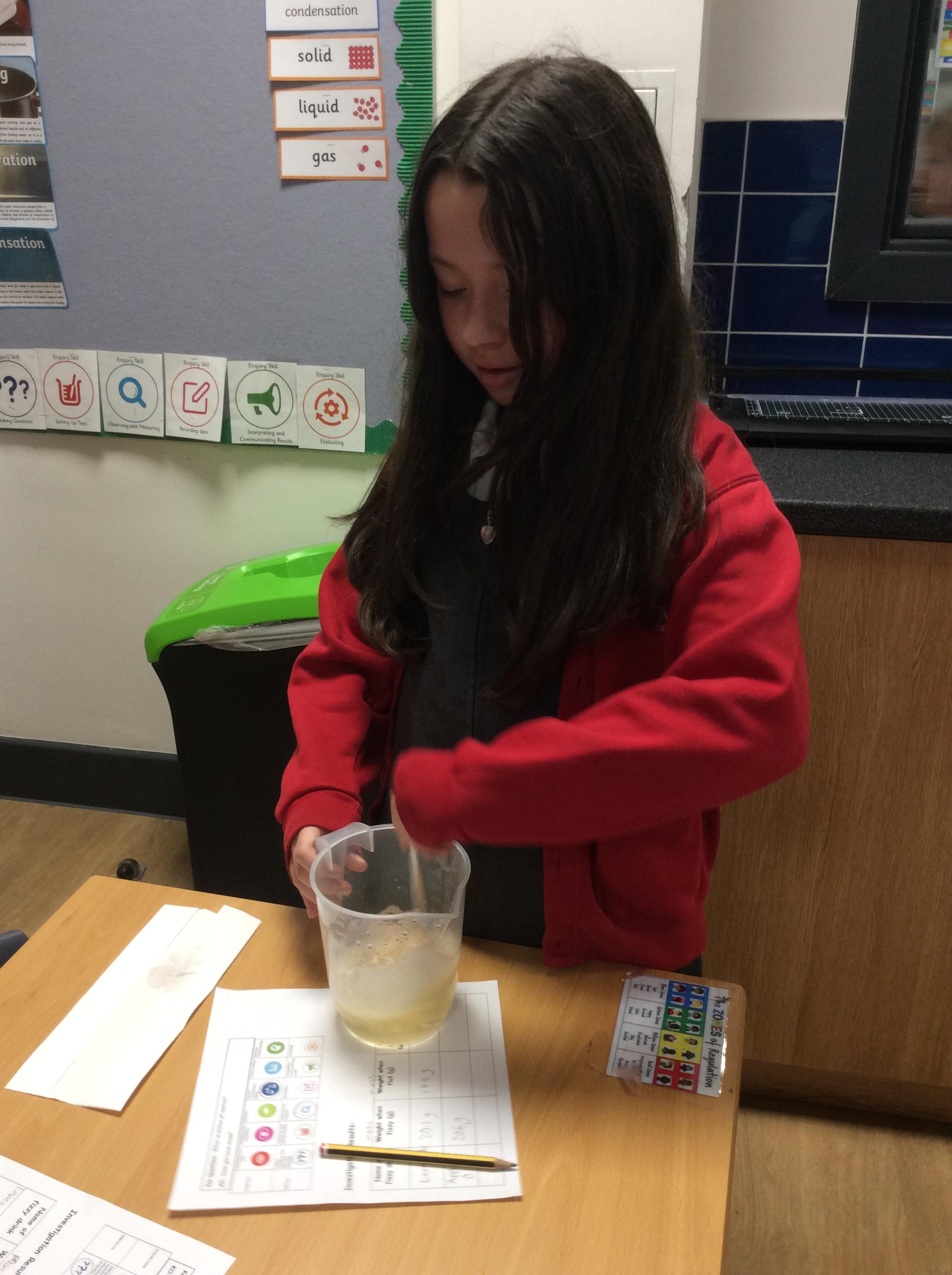 In science, we continue our learning of solids, liquids and gases. We investigated 'does gas have mass'. Using fizzy drinks, we weighed each drink before stirring until flat. We weighed again to see if the drink was lighter.