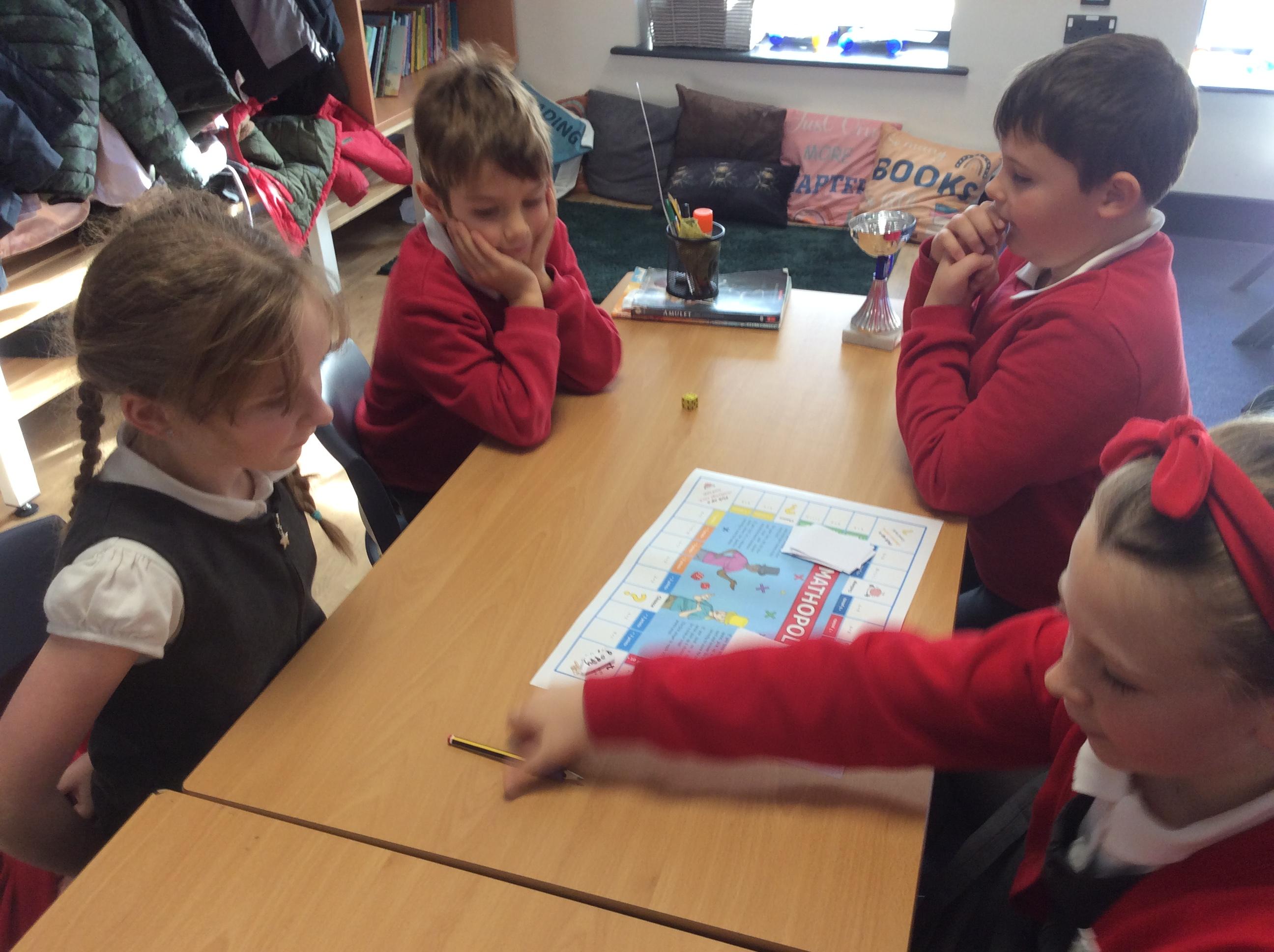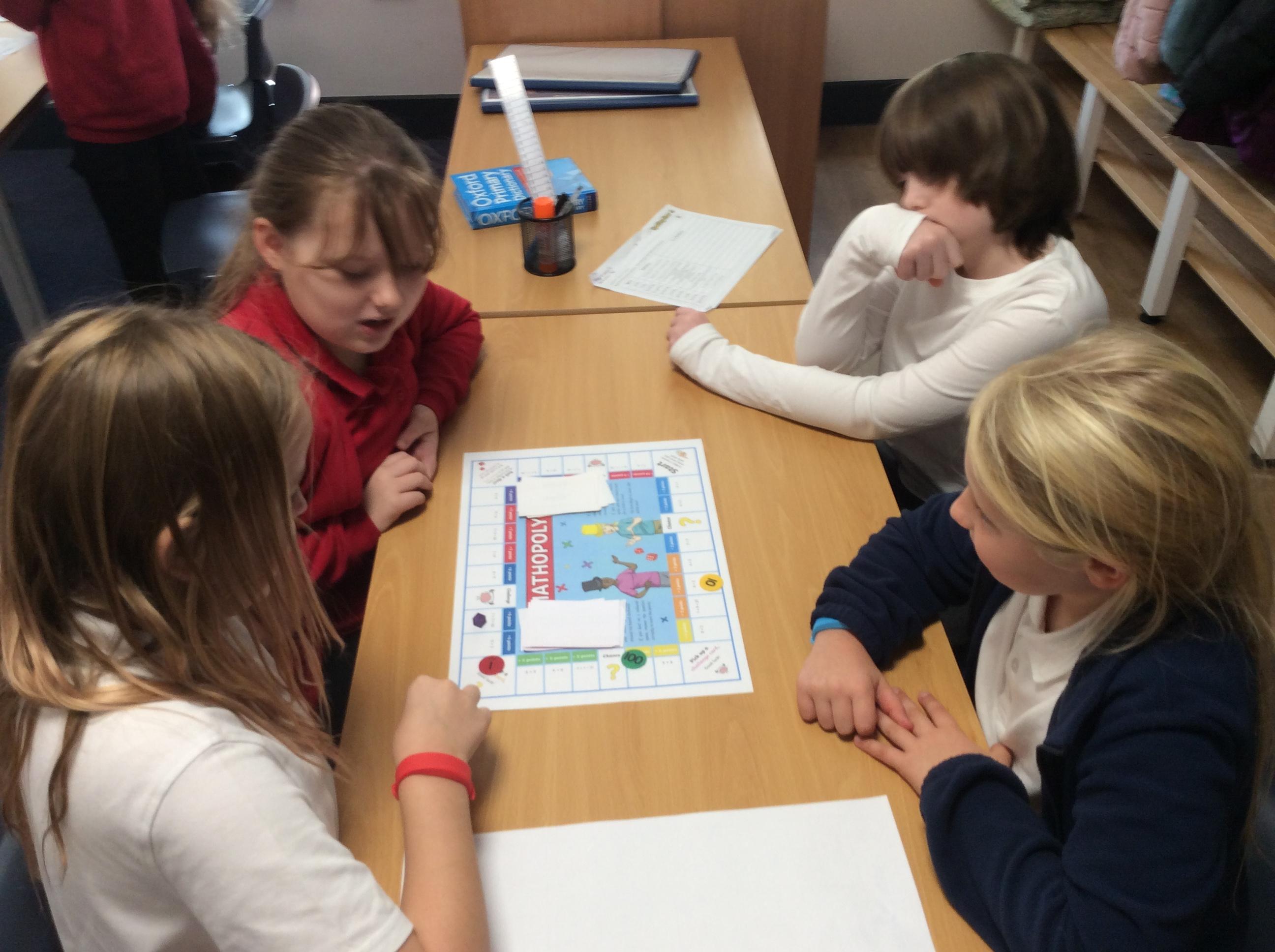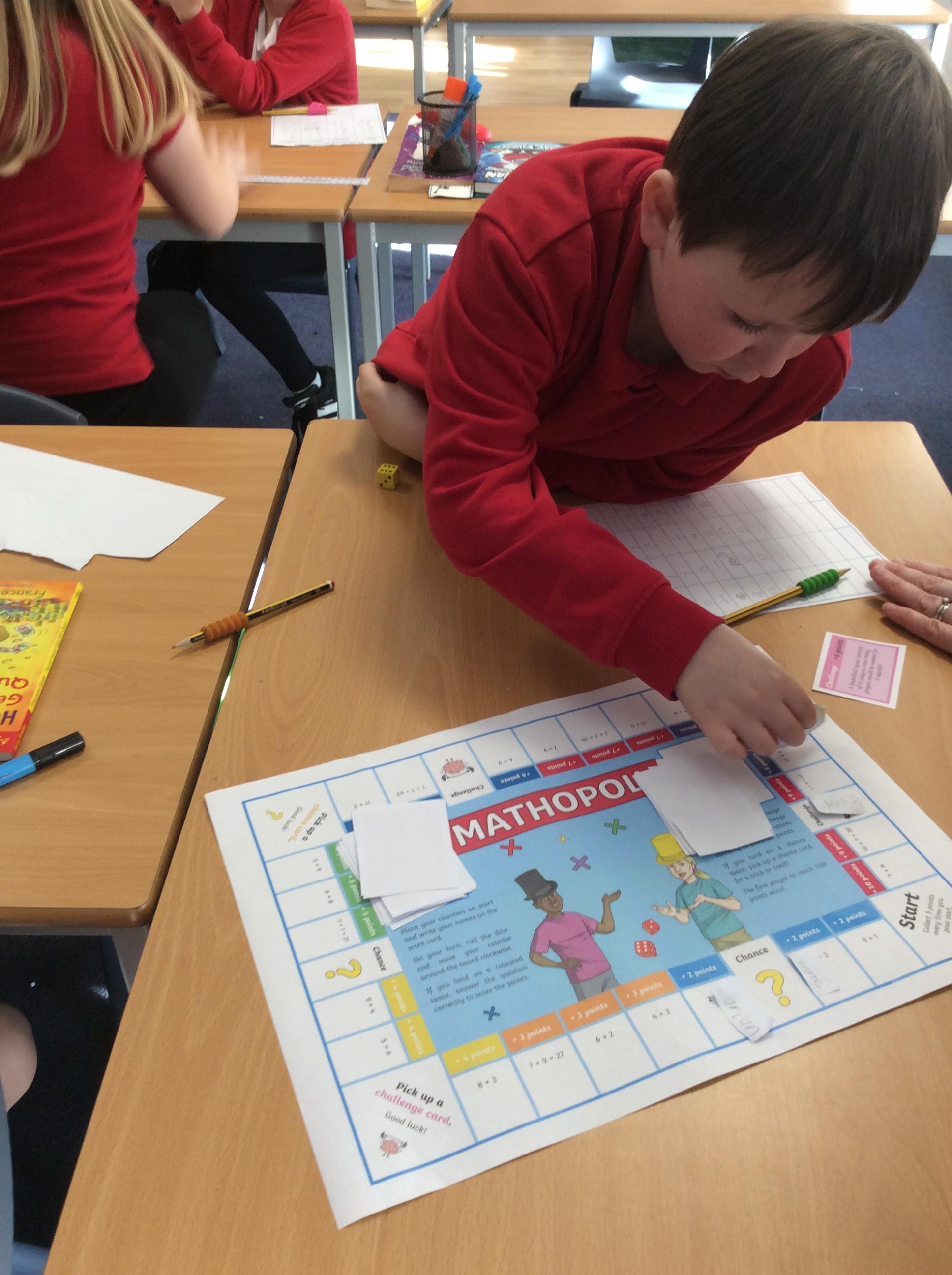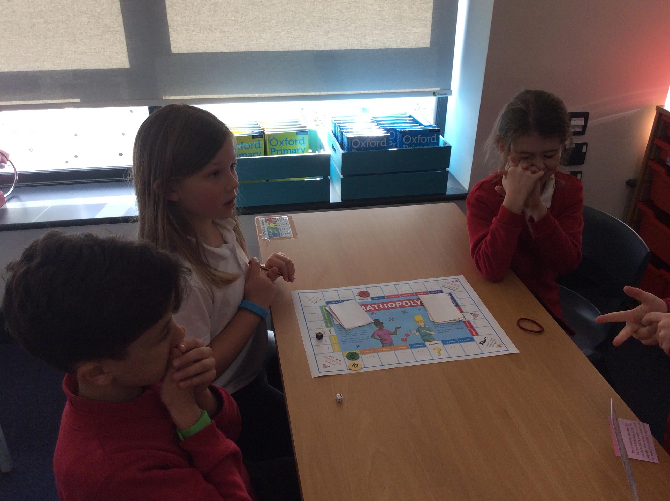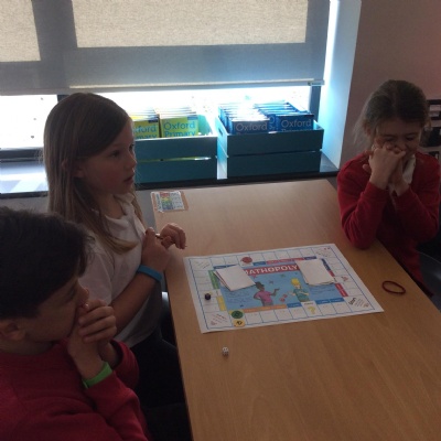 We have been practicing our 3's, 6's and 9's by playing a game called Mathopoly. We had a great time.