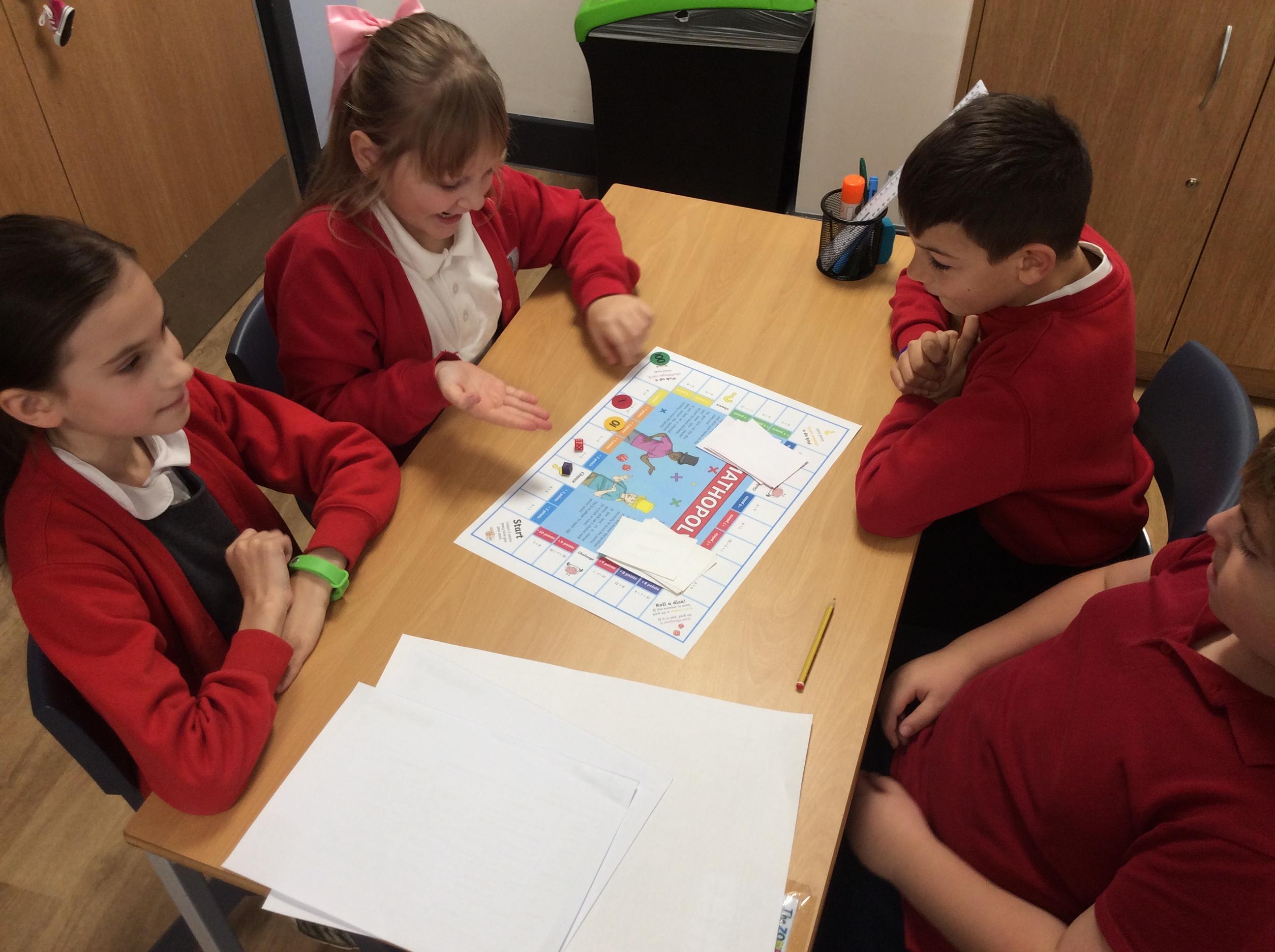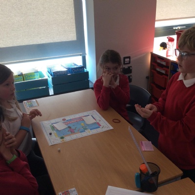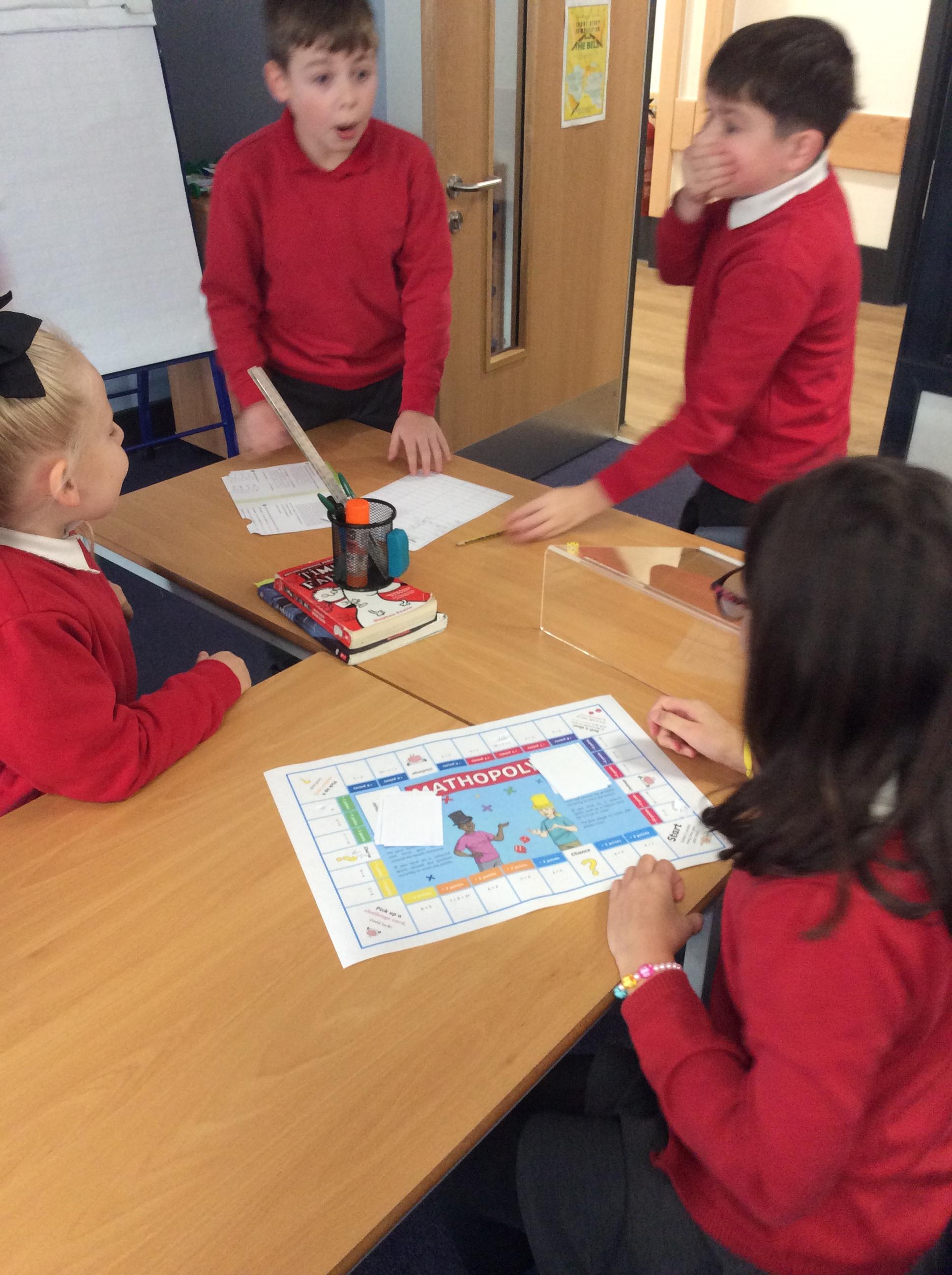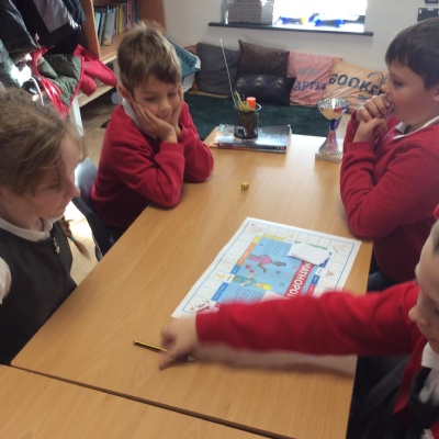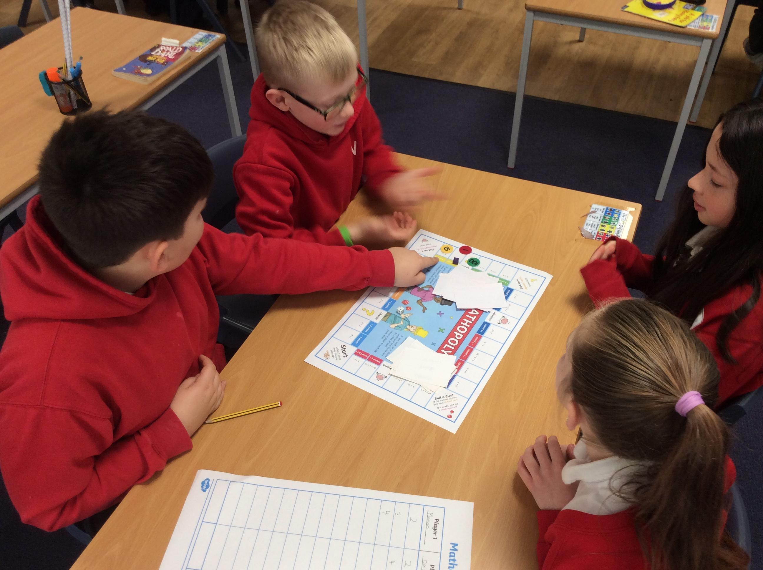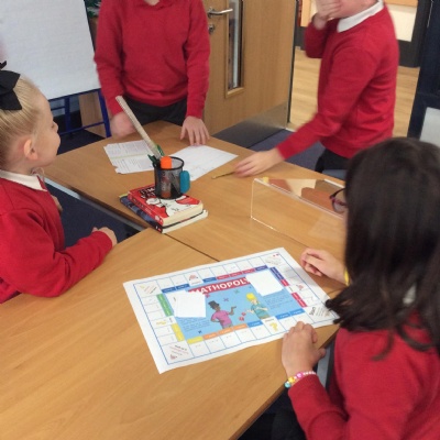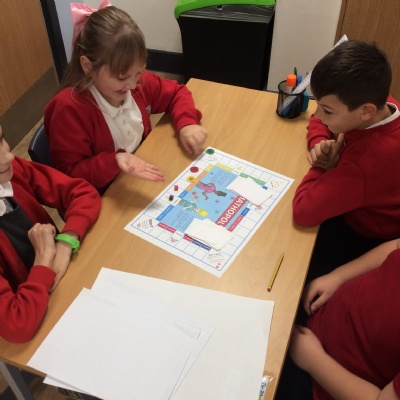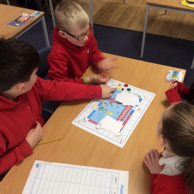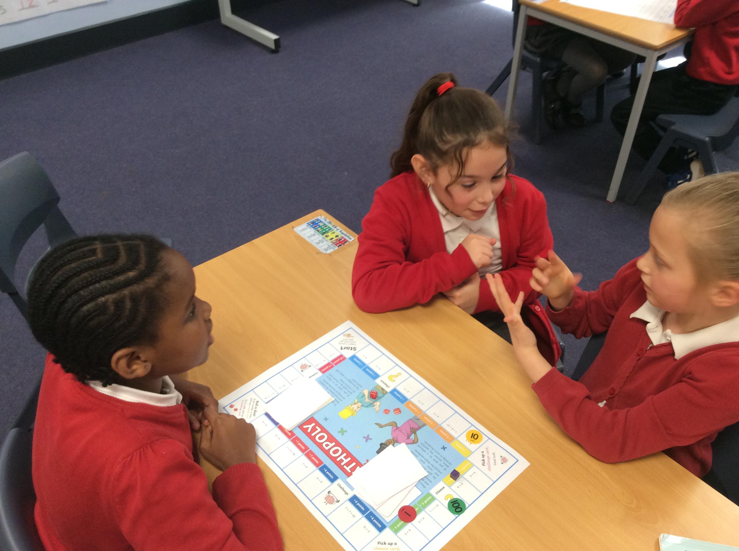 We have been practicing our 3's, 6's and 9's by playing a game called Mathopoly. We had a great time.