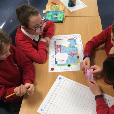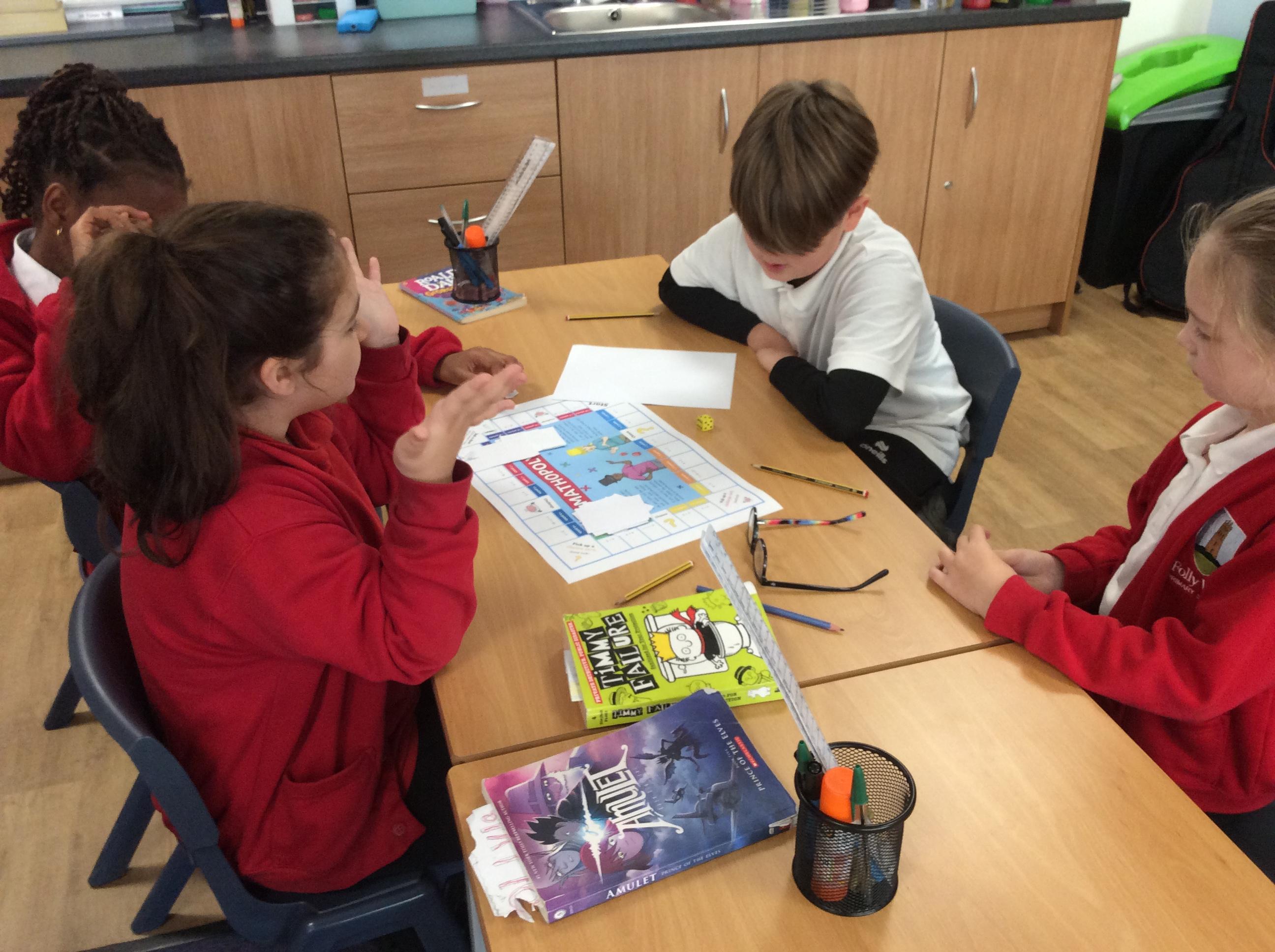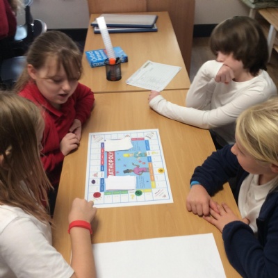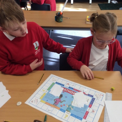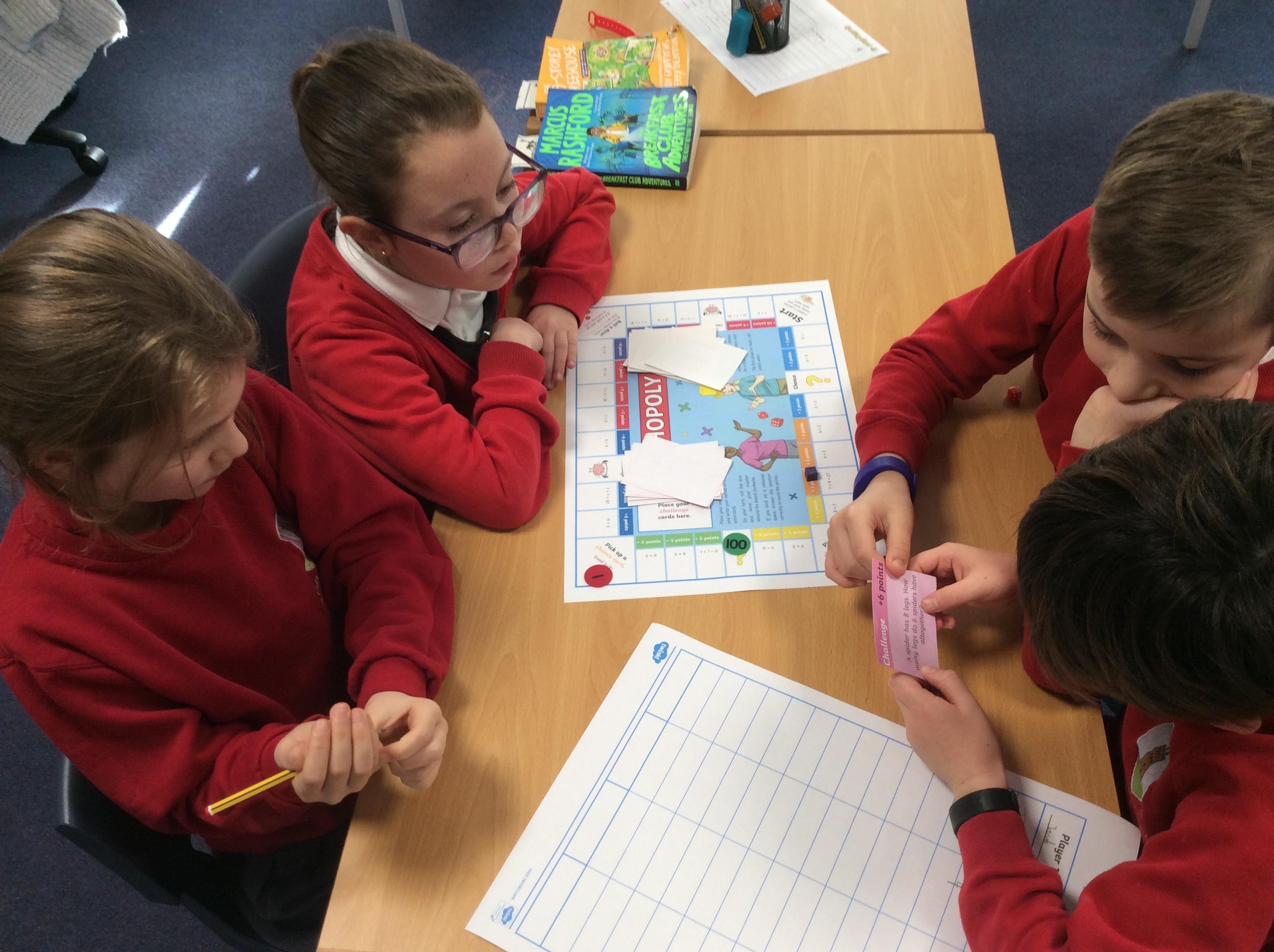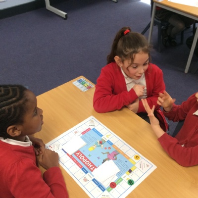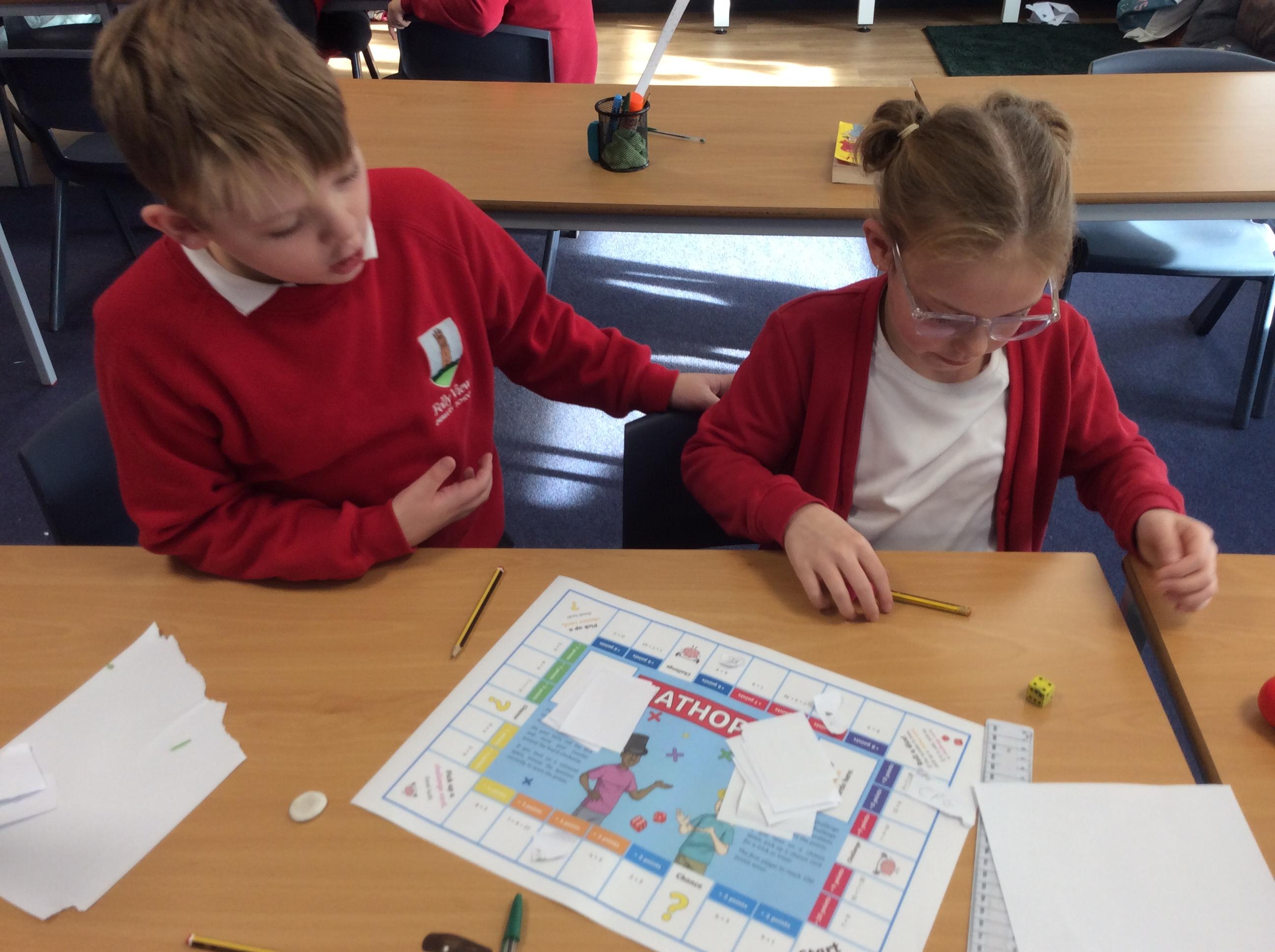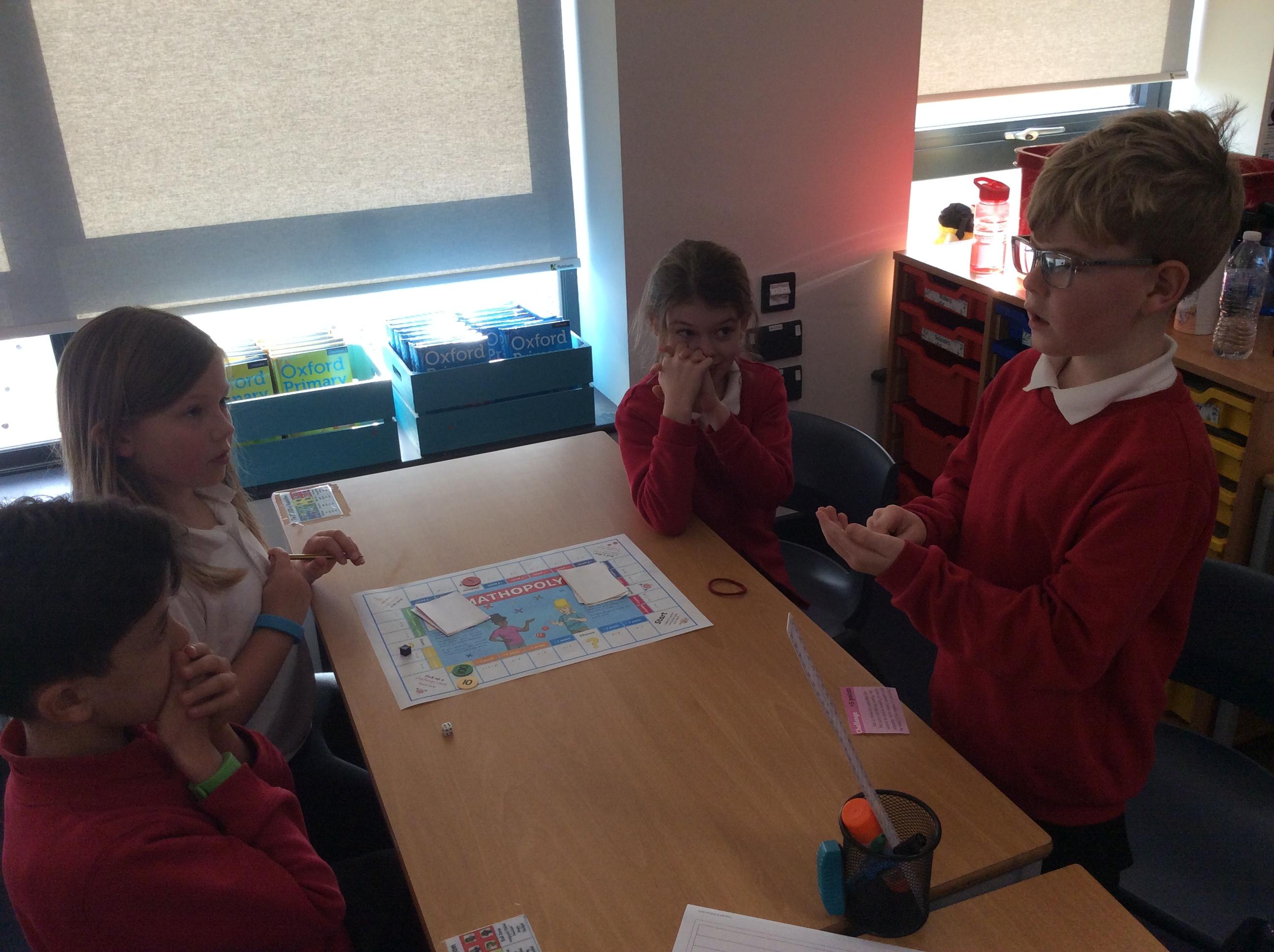 We have been practicing our 3's, 6's and 9's by playing a game called Mathopoly. We had a great time.