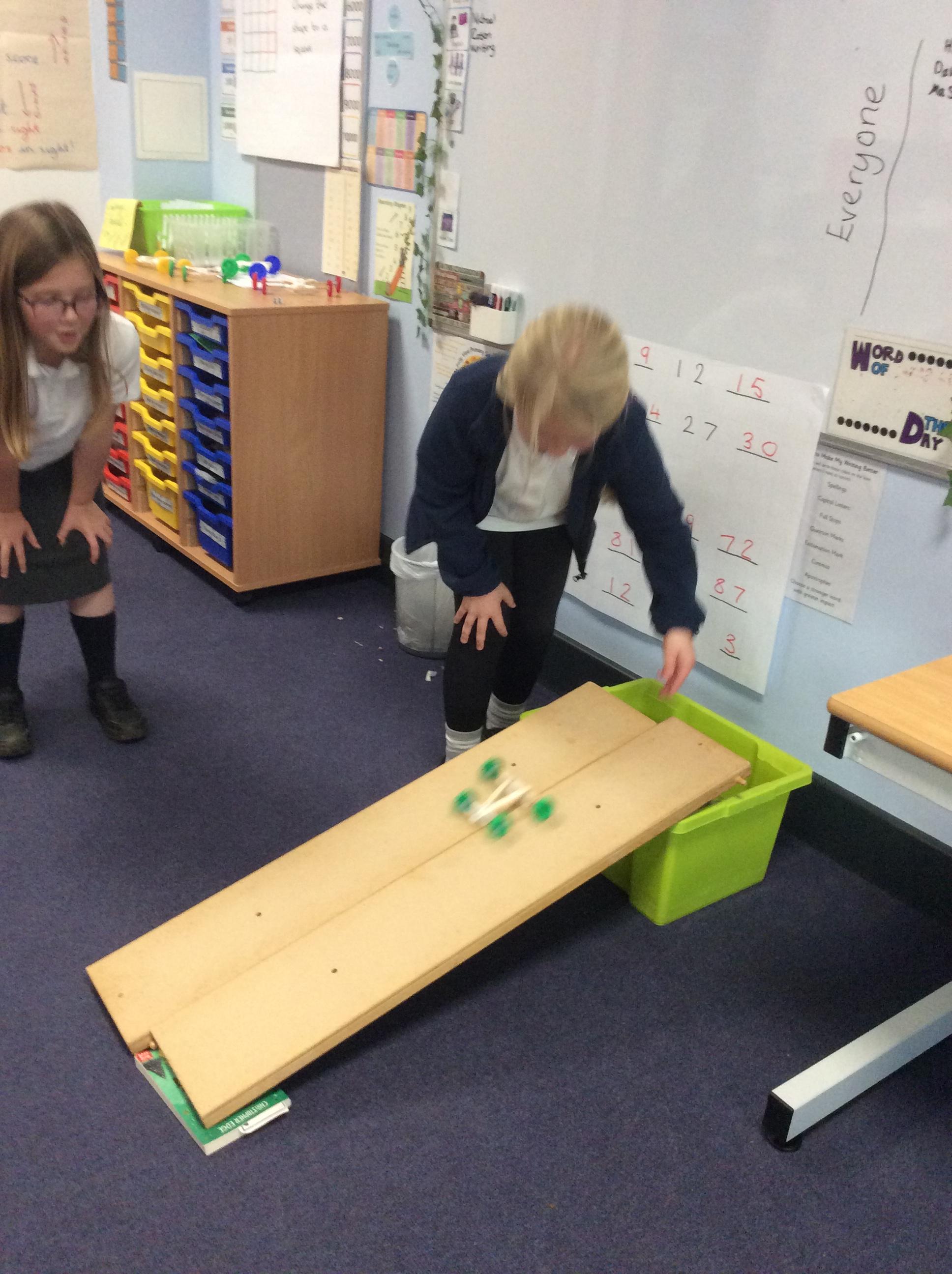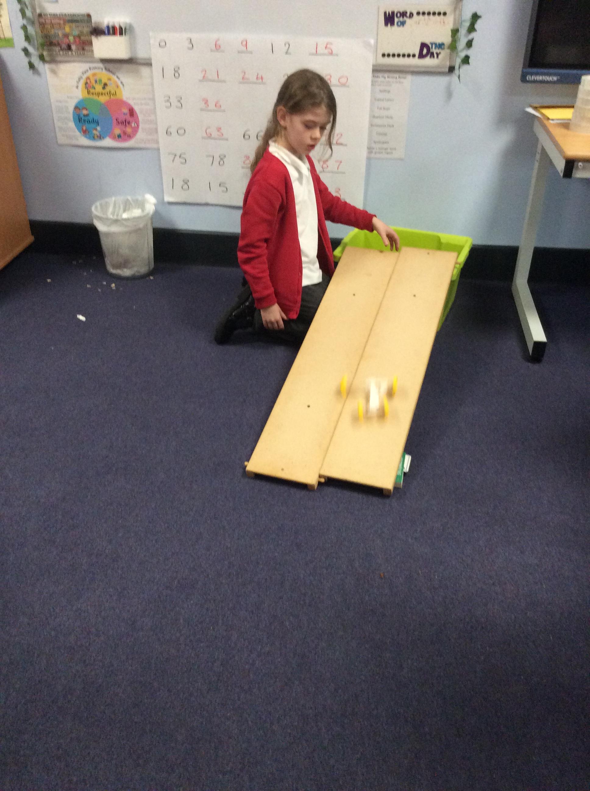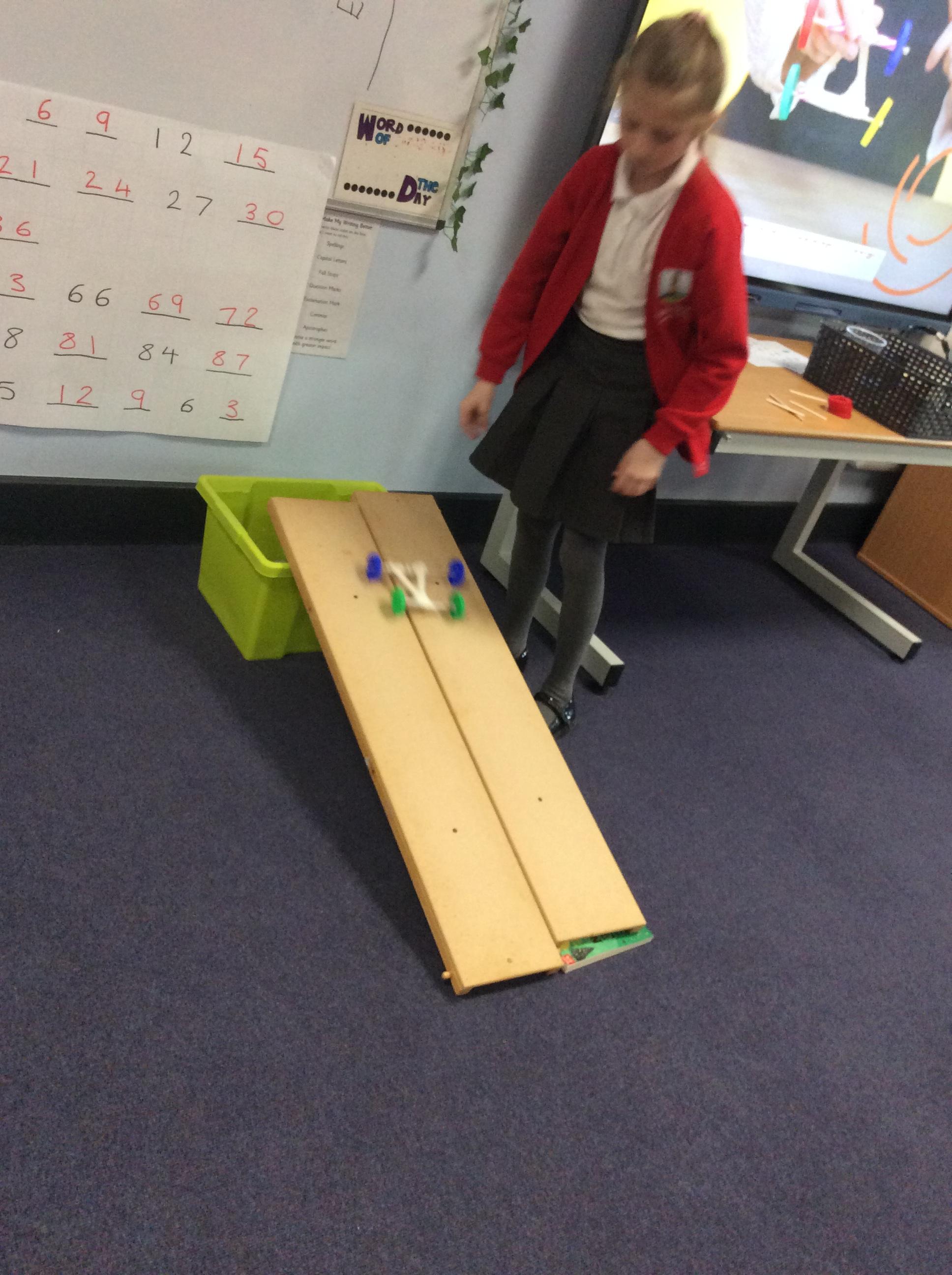 We have been working hard to make our chassis for a moving car. We tested them on ramps. This week we designed the body for our cars.